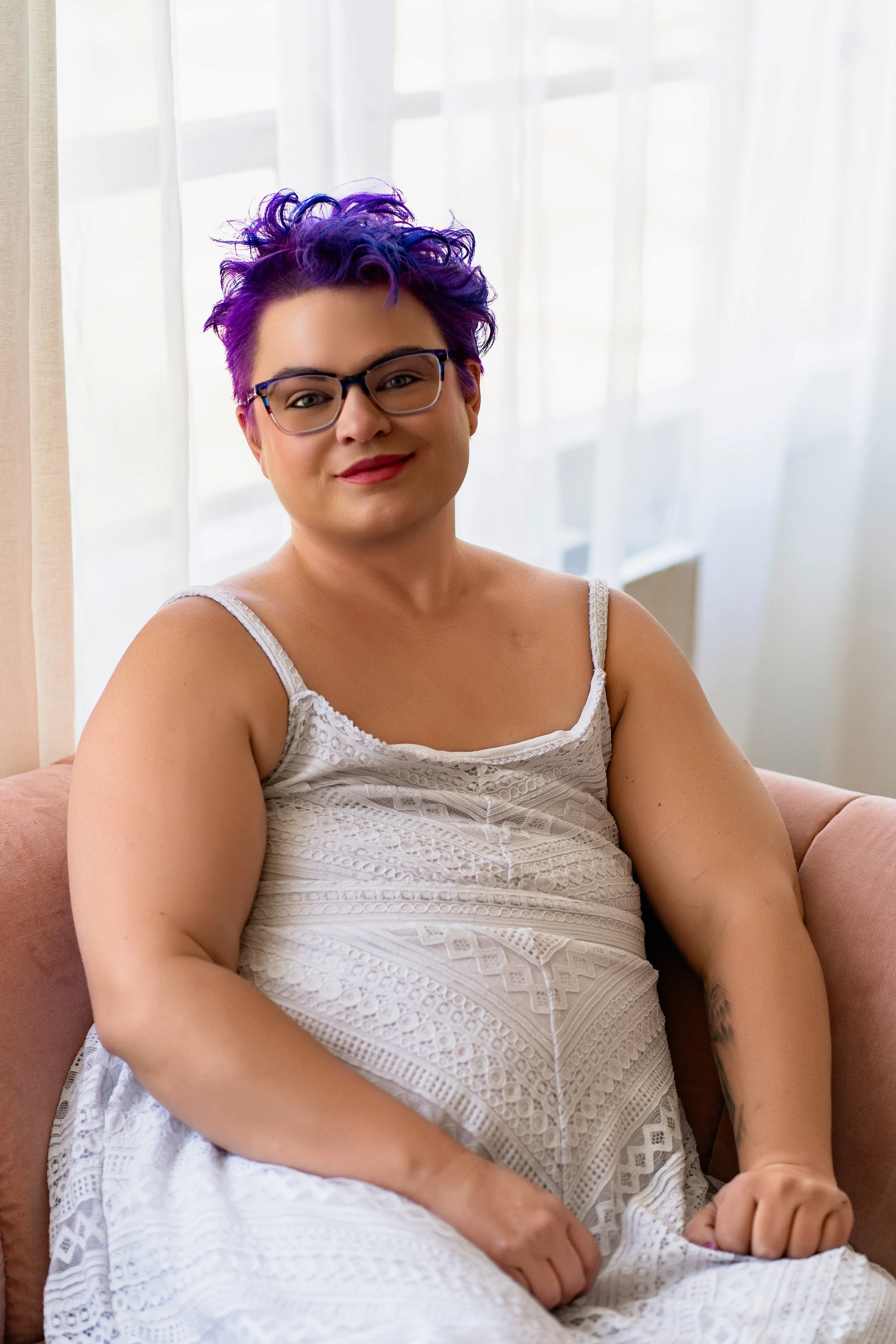 In 2015, Andra was diagnosed with Stage IIb invasive ductal carcinoma with lymph node involvement. She underwent bilateral mastectomy to flat, chemotherapy, radiation, and hormone-blocking therapy. After briefly trying implant reconstruction, she chose to return to living flat and has proudly represented aesthetic flat closure since 2019.
